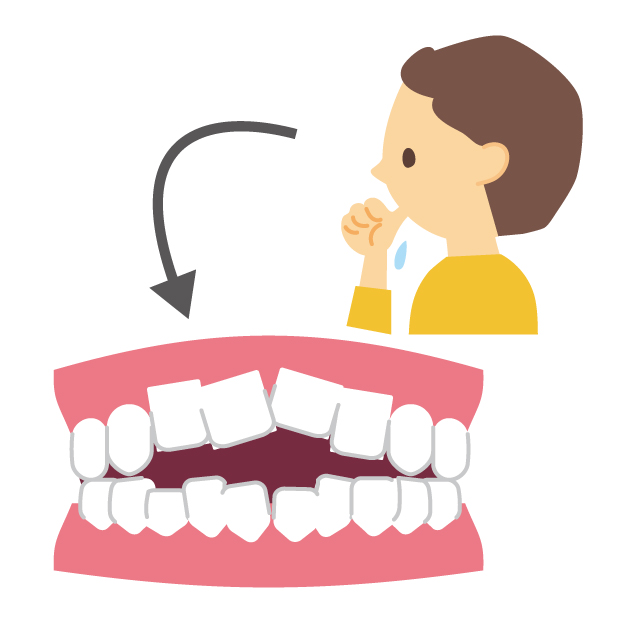 オープンバイトは前歯が噛み合わないため、本来前歯にかかるはずの力が奥歯にかかります。